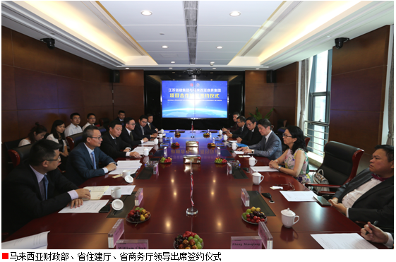 7月17日上午,江蘇省建集團(tuán)與馬來西亞鼎昇集團(tuán)就馬來西亞80億元人民可負(fù)擔(dān)房屋項(xiàng)目舉行合作簽約儀式。馬來西亞財(cái)政部副部長(zhǎng)拿督李志亮及夫人拿汀李善純、馬來西亞鼎昇集團(tuán)董事長(zhǎng)拿督賴俊瀚,江蘇省住房城鄉(xiāng)建設(shè)廳黨組書記顧小平、江蘇省商務(wù)廳副廳長(zhǎng)朱益民、江蘇省商務(wù)廳外經(jīng)處處長(zhǎng)陸堅(jiān)、江蘇省建筑管理總站站長(zhǎng)李震、江蘇省建集團(tuán)總裁仇天青等出席儀式。